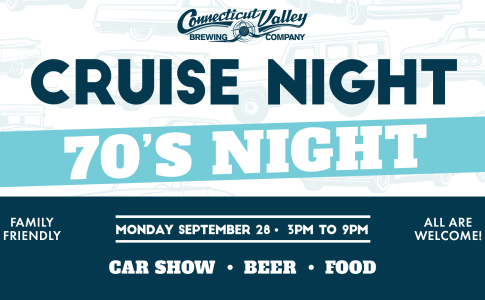 Join us at Connecticut Valley Brewing Company for our CRUISE NIGHT CAR SHOW – Every Monday Night 3-9PM!!! Everyone is welcome at this family-friendly event. Enjoy a beer, grab some food from Birdhouse, and hang out on our spacious patios with firepits. ALL CARS ARE WELCOME at every cruise night, theme or not! Event runs weekly, weather permitting. If cancelled, we will share on the Connecticut Valley Brewing Company Facebook page. This is a family-friendly event. NO BURN OUTS. NO SMOKING. Please be respectful of other guests. Kids must always stay with parents. Dogs must remain leashed and the responsibility of their owners. Nobody under the age of 18 is allowed without a parent and guardian present. All event questions can be emailed to info@ctvalleybrewing.com