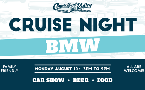 Join us at Connecticut Valley Brewing Company for our CRUISE NIGHT CAR SHOW – Every Monday Night 3-9PM!!! Everyone is welcome at this family-friendly event. Enjoy a beer, grab some food from Birdhouse, and hang out on our spacious patios with firepits. ALL CARS ARE WELCOME at every cruise night, theme or not! Event runs weekly, weather permitting. If cancelled, we will share on the Connecticut Valley Brewing Company Facebook page. This is a family-friendly event. NO BURN OUTS. NO SMOKING. Please be respectful of other guests. Kids must always stay with parents. Dogs must remain leashed and the responsibility of their owners. Nobody under the age of 18 is allowed without a parent and guardian present. All event questions can be emailed to info@ctvalleybrewing.com