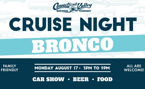 Join us at Connecticut Valley Brewing Company for our CRUISE NIGHT CAR SHOW – Every Monday Night 3-9PM!!! Everyone is welcome at this family-friendly event. Enjoy a beer, grab some food from Birdhouse, and hang out on our spacious patios with firepits. ALL CARS ARE WELCOME at every cruise night, theme or not! Event runs weekly, weather permitting. If cancelled, we will share on the Connecticut Valley Brewing Company Facebook page. This is a family-friendly event. NO BURN OUTS. NO SMOKING. Please be respectful of other guests. Kids must always stay with parents. Dogs must remain leashed and the responsibility of their owners. Nobody under the age of 18 is allowed without a parent and guardian present. All event questions can be emailed to info@ctvalleybrewing.com