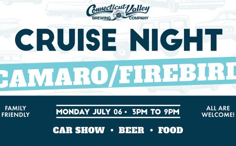 Join us at Connecticut Valley Brewing Company for our CRUISE NIGHT CAR SHOW – Every Monday Night 3-9PM!!! Everyone is welcome at this family-friendly event. Enjoy a beer, grab some food from Birdhouse, and hang out on our spacious patios with firepits. ALL CARS ARE WELCOME at every cruise night, theme or not! Event runs weekly, weather permitting. If cancelled, we will share on the Connecticut Valley Brewing Company Facebook page. This is a family-friendly event. NO BURN OUTS. NO SMOKING. Please be respectful of other guests. Kids must always stay with parents. Dogs must remain leashed and the responsibility of their owners. Nobody under the age of 18 is allowed without a parent and guardian present. All event questions can be emailed to info@ctvalleybrewing.com