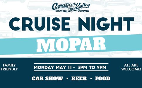 Join us at Connecticut Valley Brewing Company for our CRUISE NIGHT CAR SHOW – Every Monday Night 3-9PM!!! Everyone is welcome at this family-friendly event. Enjoy a beer, grab some food from Birdhouse, and hang out on our spacious patios with firepits. ALL CARS ARE WELCOME at every cruise night, theme or not! Event runs weekly, weather permitting. If cancelled, we will share on the Connecticut Valley Brewing Company Facebook page. This is a family-friendly event. NO BURN OUTS. NO SMOKING. Please be respectful of other guests. Kids must always stay with parents. Dogs must remain leashed and the responsibility of their owners. Nobody under the age of 18 is allowed without a parent and guardian present. All event questions can be emailed to info@ctvalleybrewing.com